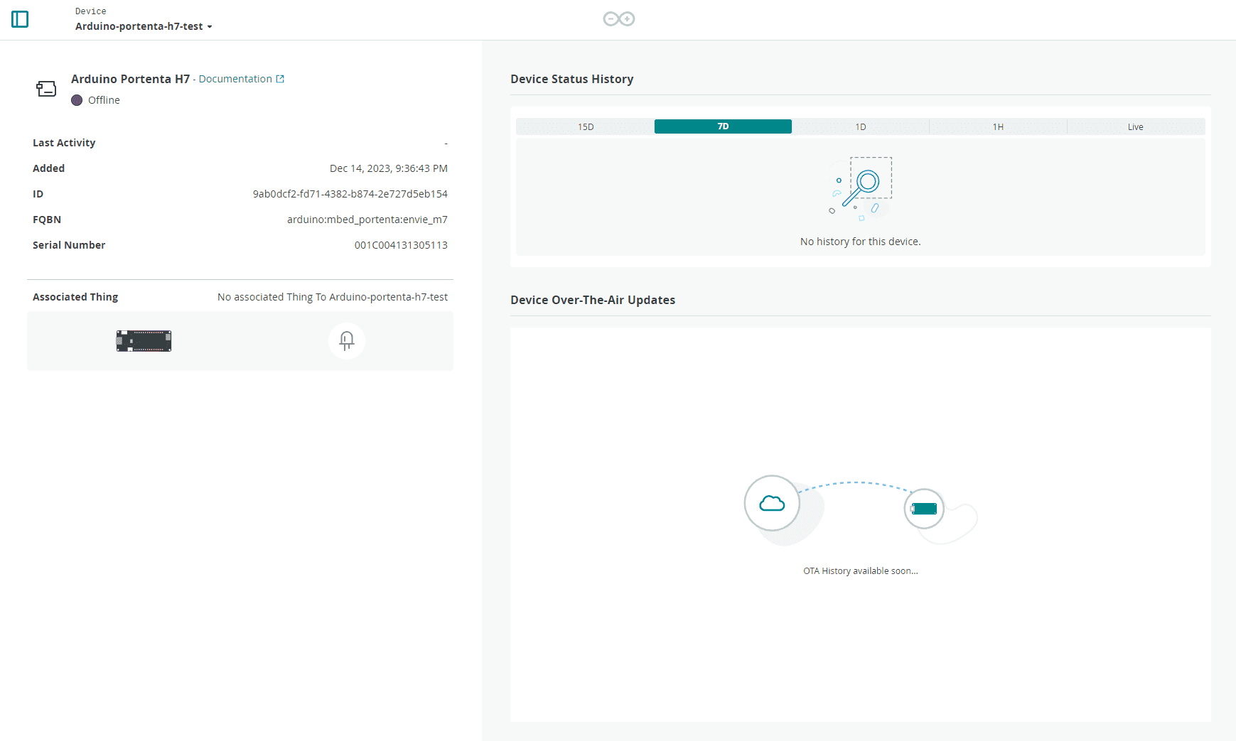 If you click on the added device, it is possible to look into its details. The details can be its device properties, device status history, and device Over-The-Air updates.