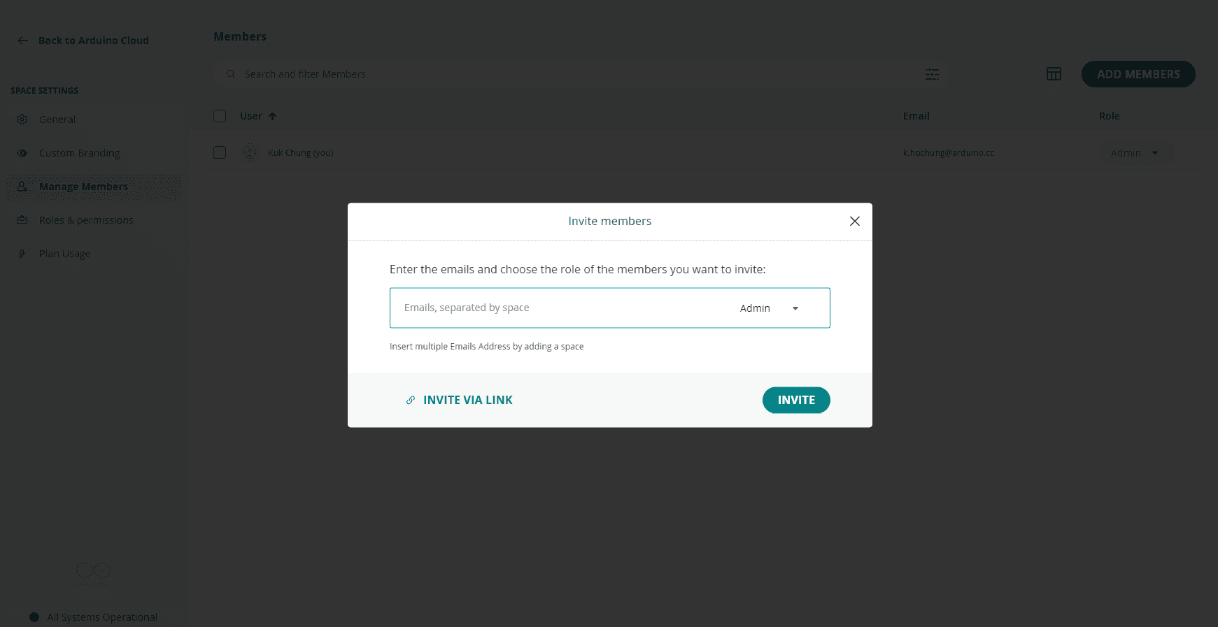 The users you added will get the invitation by email with a link to join your Shared Space. You are now ready to start working all together on your Arduino Cloud projects.