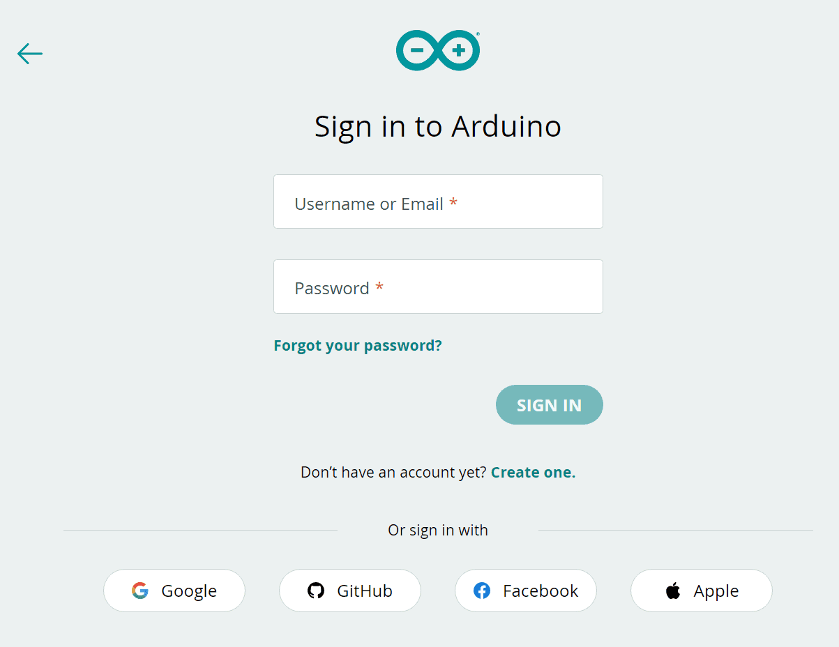 Arduino Cloud login