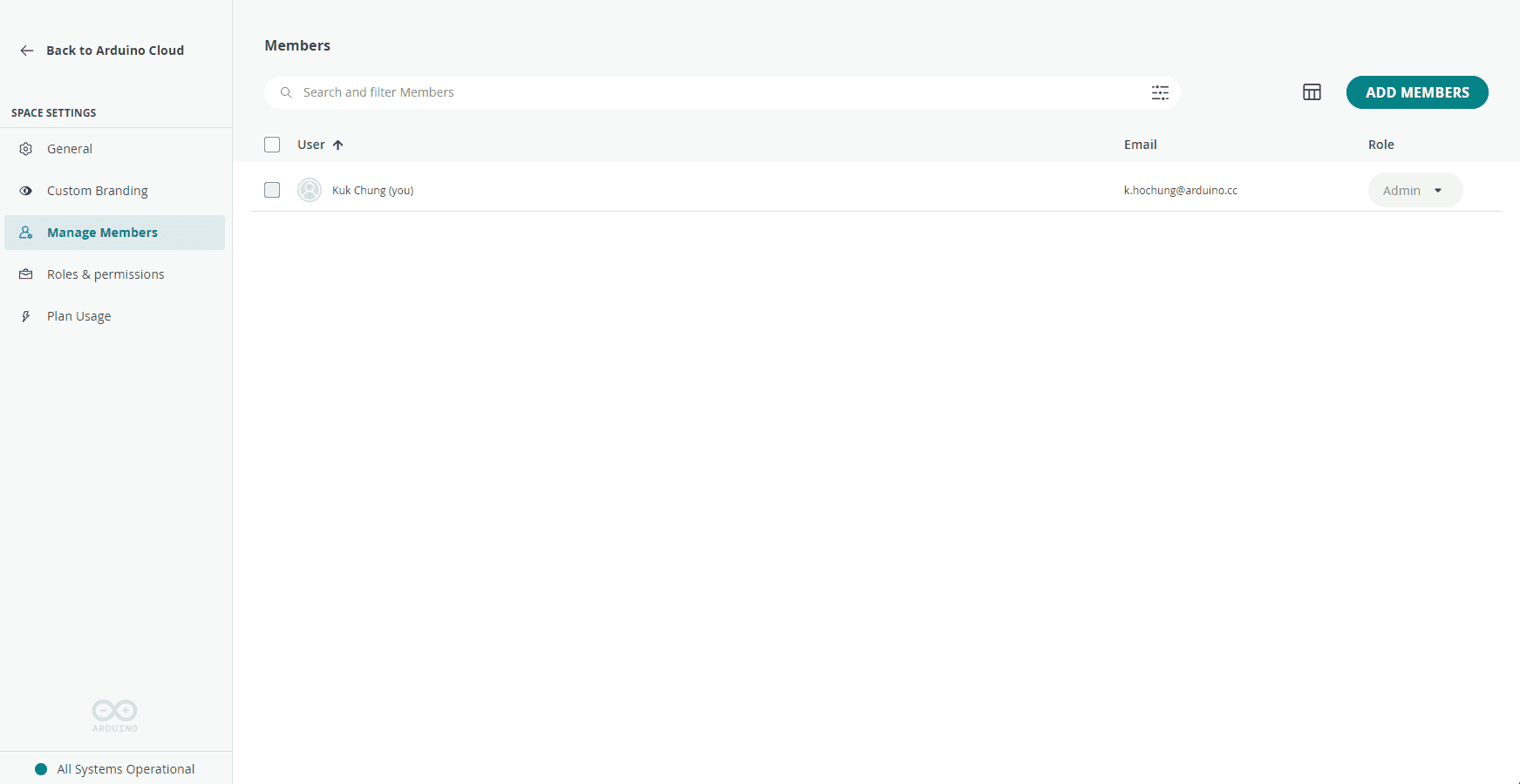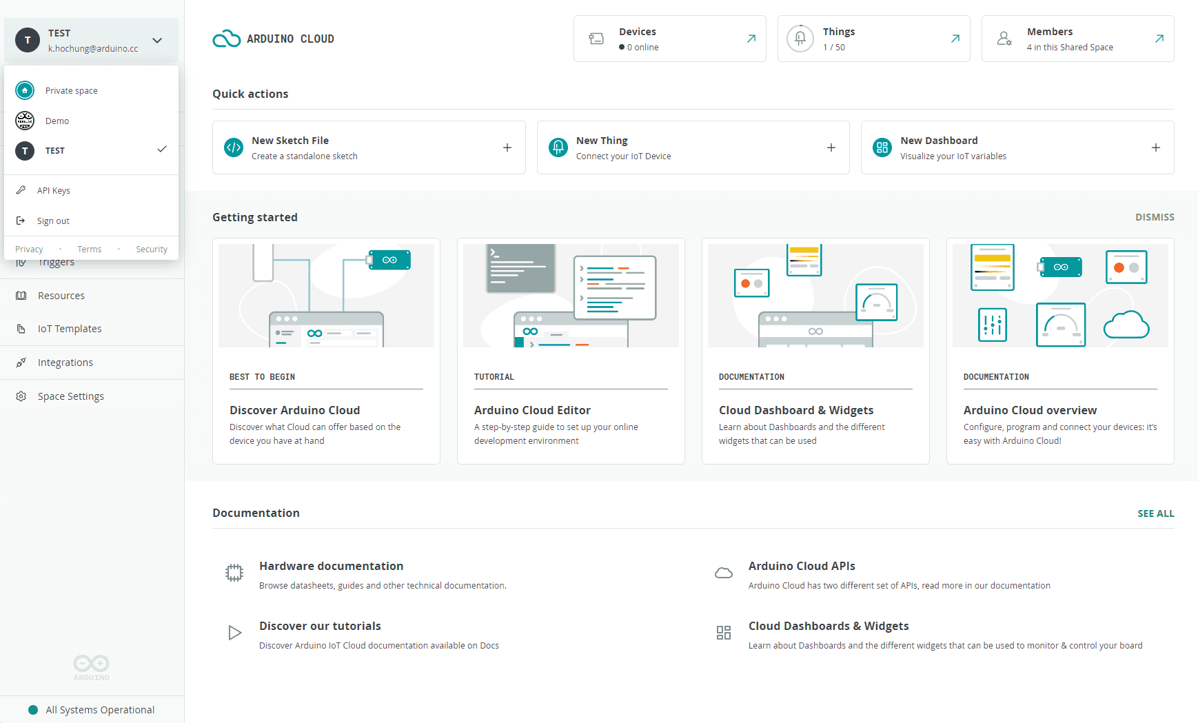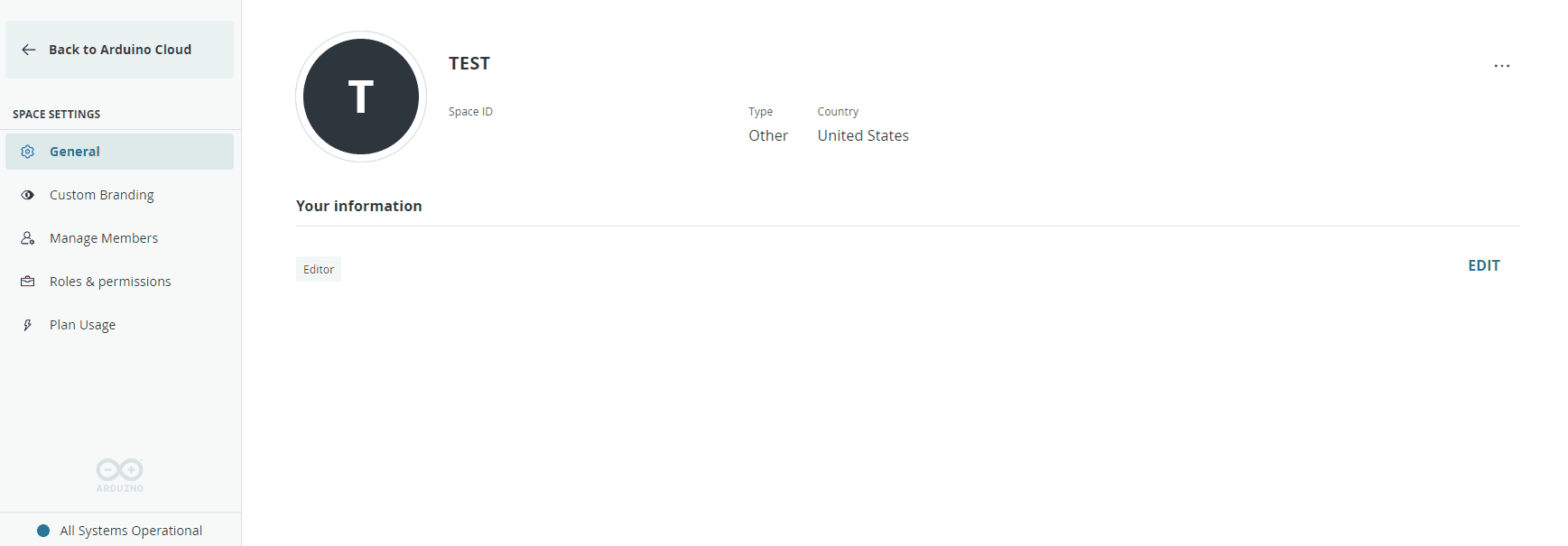 Arduino Cloud > Space Settings > General