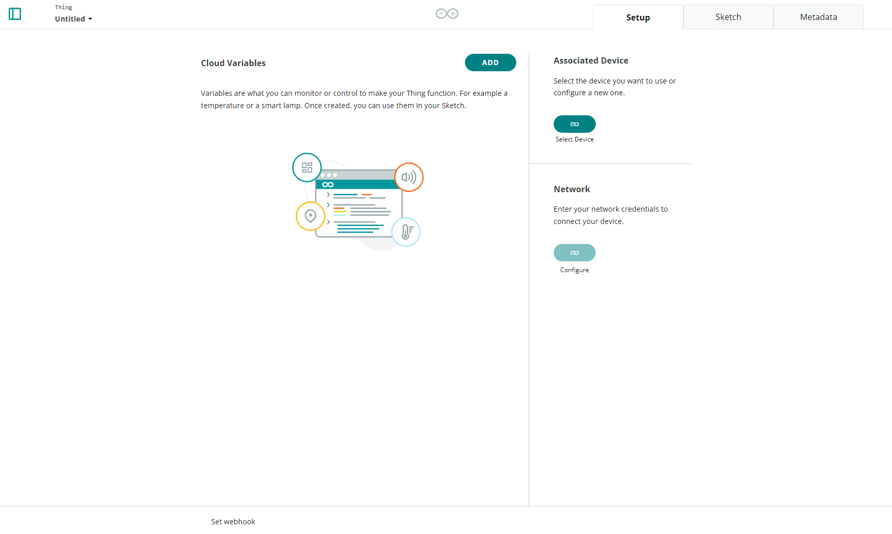To use your devices in IoT Cloud, you need to associate a Thing with each of them. A Thing is the digital twin of your device, holding the configuration of some variables and other settings, as well as the history of the data collected for those variables.