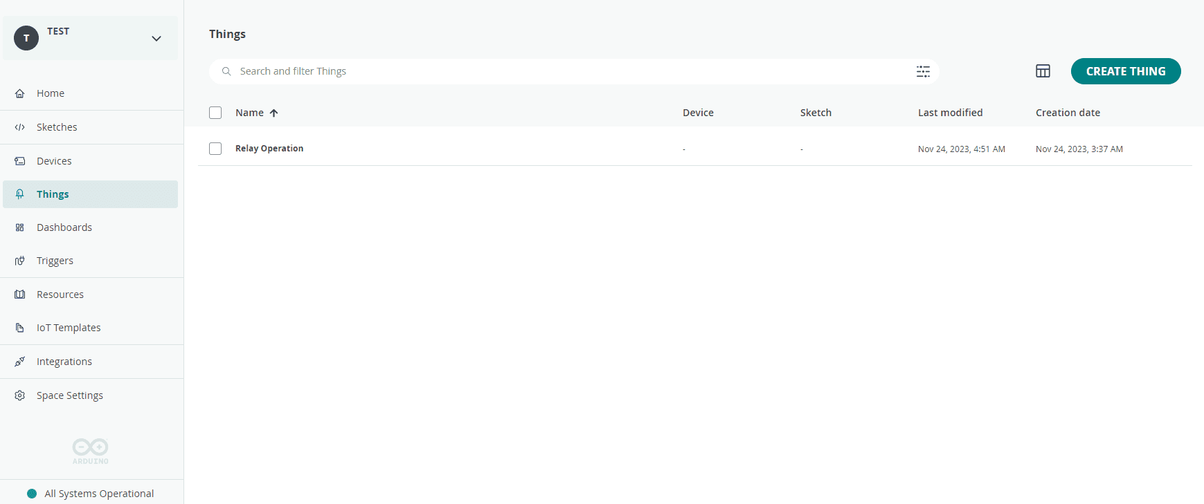 To create a Thing, click on CREATE THING found within Things page accessed via the Shared Space sidebar.