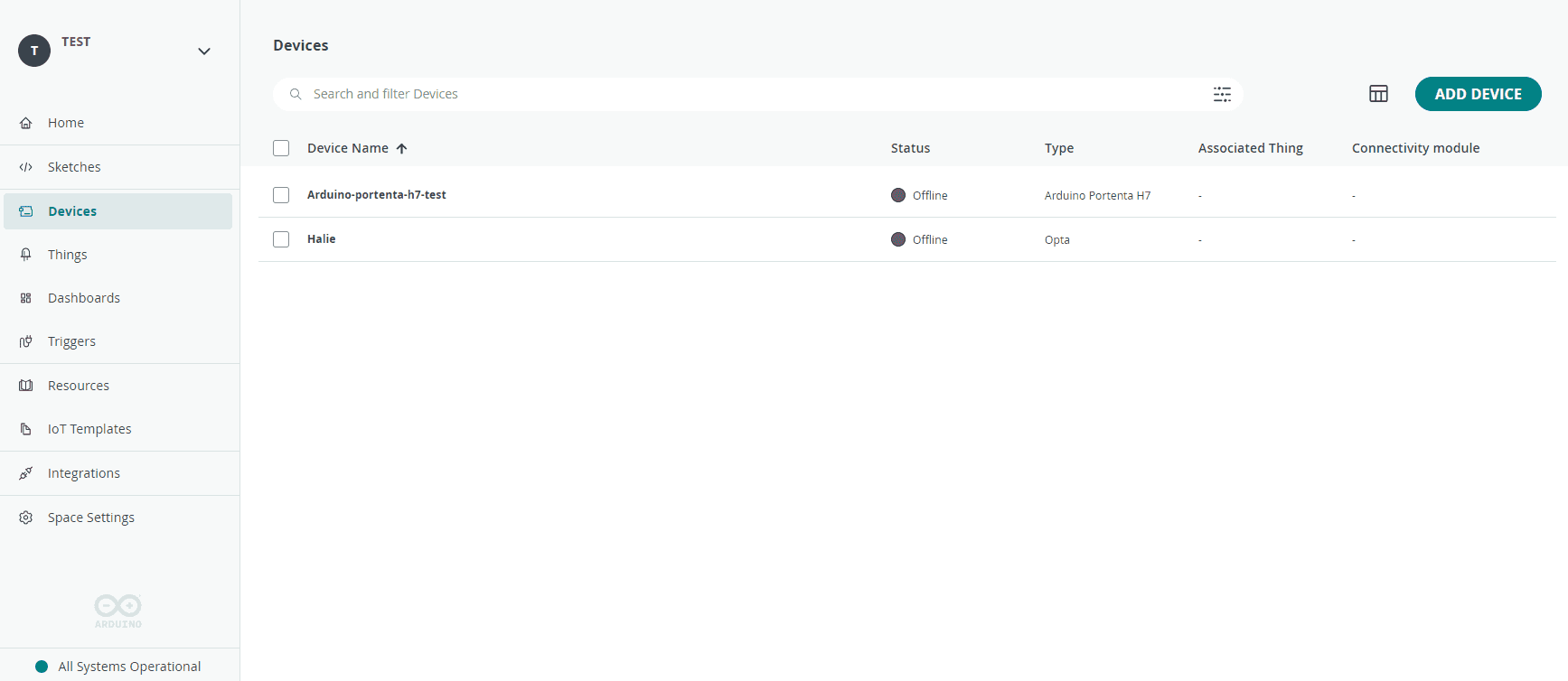 List of devices in your Arduino Cloud
