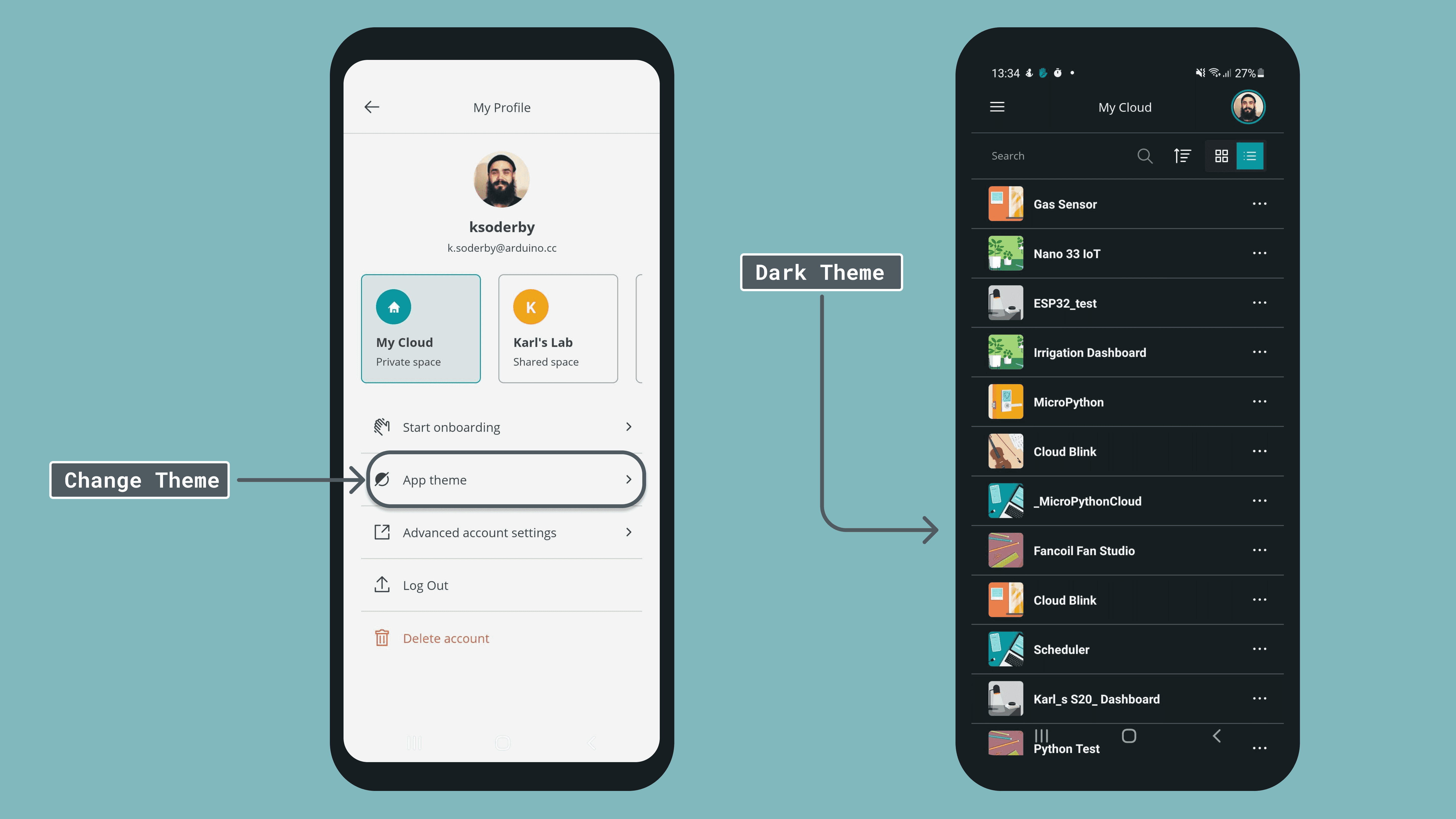 You can change between the default (light) to the dark theme, by navigating to Settings > App theme.