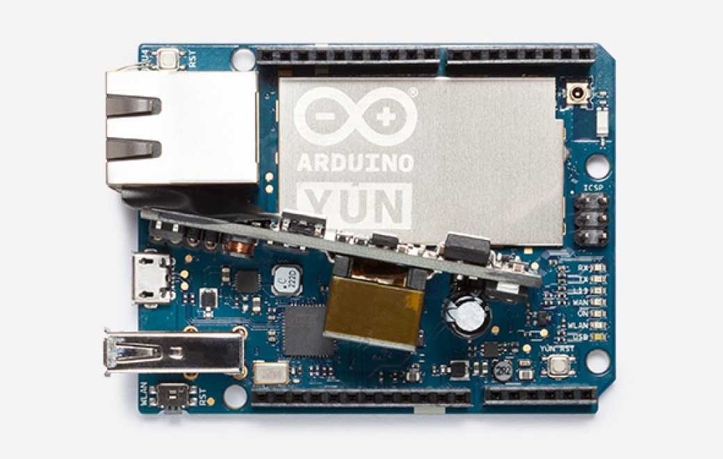 The Arduino Yún is a microcontroller board based on the ATmega32u4 and the Atheros AR9331. The Atheros processor supports a Linux distribution based on OpenWrt named Linino OS. The board has built-in Ethernet and WiFi support, a USB-A port, micro-SD card slot, 20 digital input/output pins (7 of them can be used as PWM outputs and 12 as analog inputs), a 16 MHz crystal oscillator, a micro USB connection, an ICSP header, and 3 reset buttons.