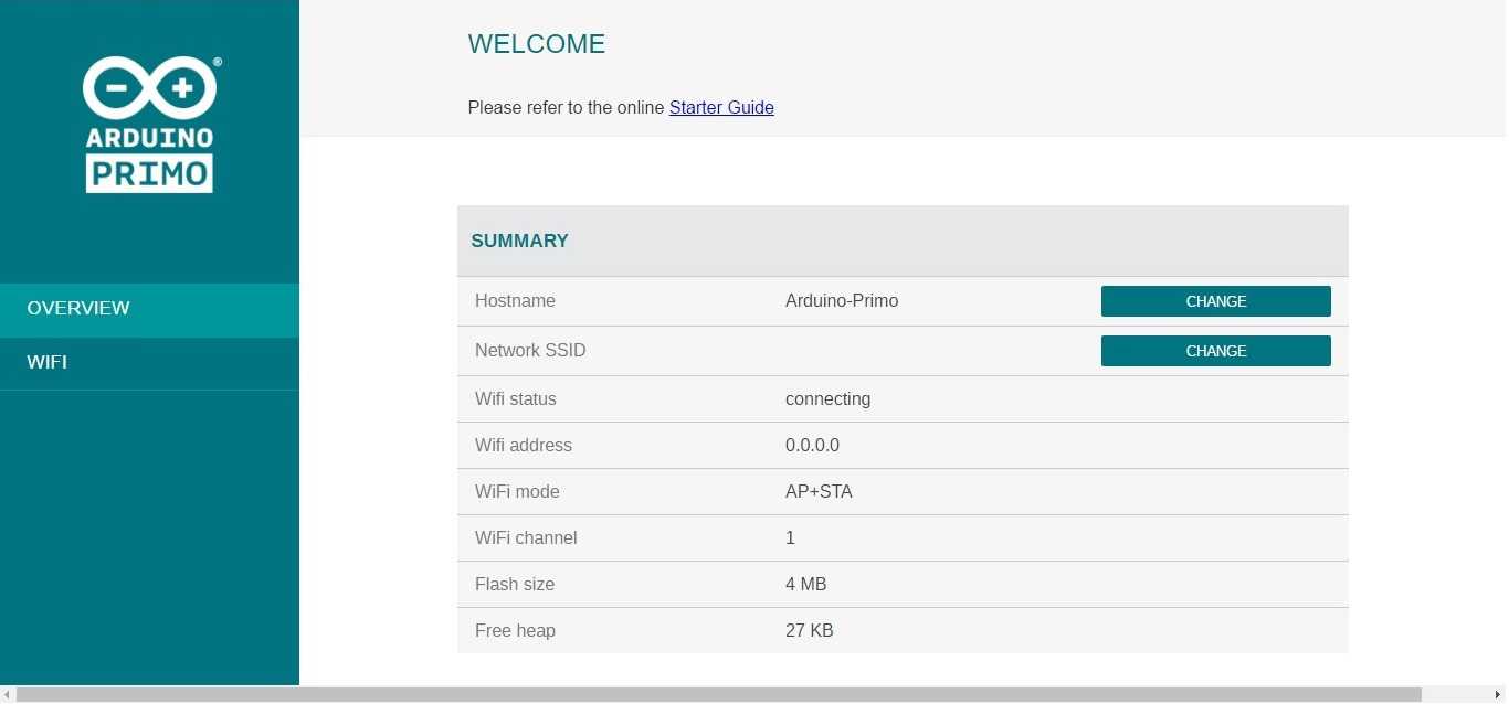 Your Arduino Primo needs a first configuration to join your WiFi network and it allows you to enter the relevant information creating its own Access Point. Please execute the following procedure every time you bring Arduino Primo in a location where the WiFi network access needs to be reconfigured.