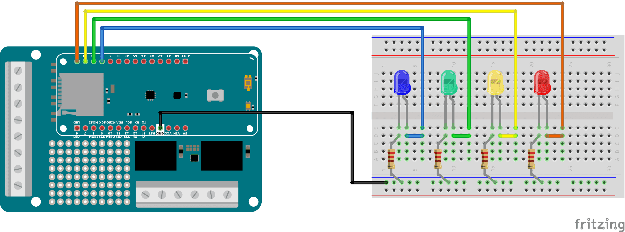 In this project, the schematic is uber-simple, as the sensor we are going to use is part of the ENV Shield, there is no need to use the breadboard in the first place.