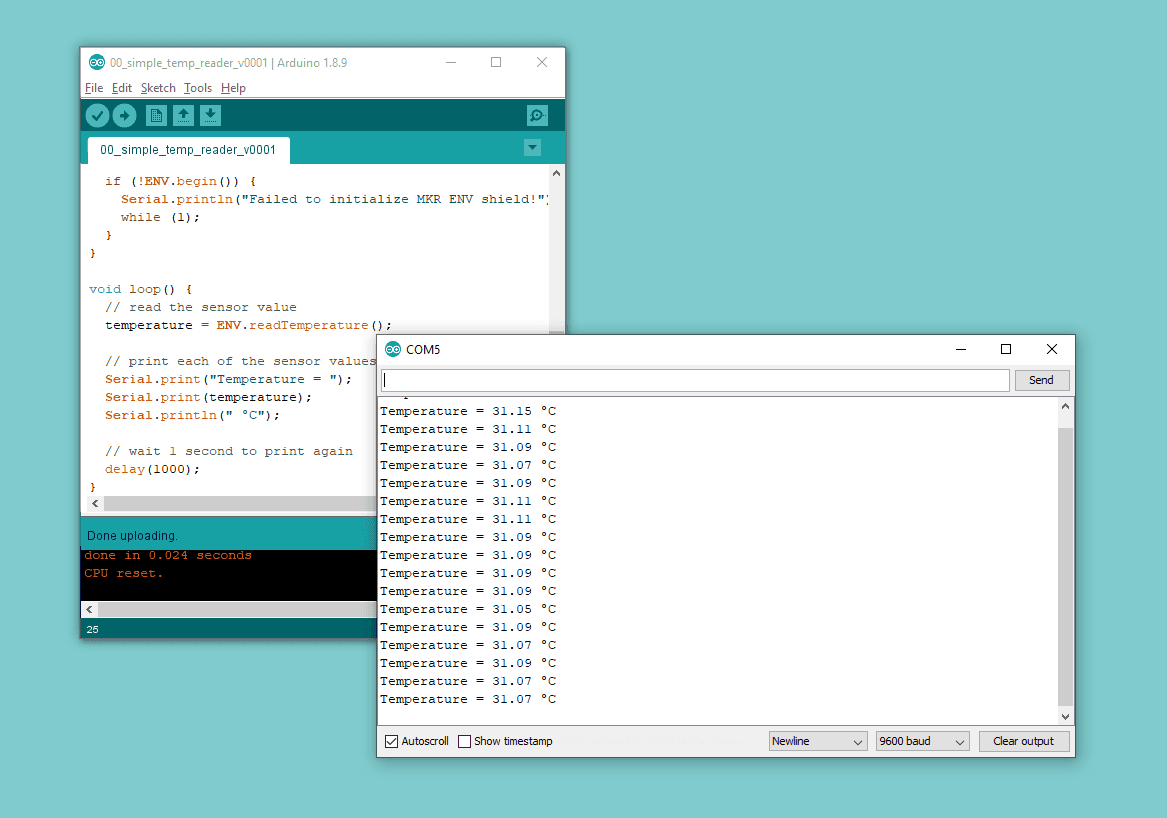 In this experiment we will be collecting temperature data from the sensor and sending it via the serial port to the code editor that will display the outcome. We will also how to experimentally change the code to display temperature in different scales.