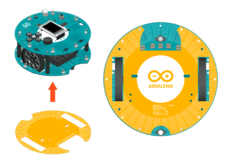 Each board on the robot has a microcontroller, which is programmed independently of the other. It is recommended that you should only program the control board (the top board) until you are familiar with the robot's functionality. The motor board (the bottom board) has a stock firmware that fulfills most general purpose applications.