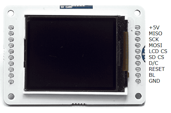 The Arduino TFT screen is a backlit TFT LCD screen with a micro SD card slot in the back. You can draw text, images, and shapes to the screen with the TFT library.