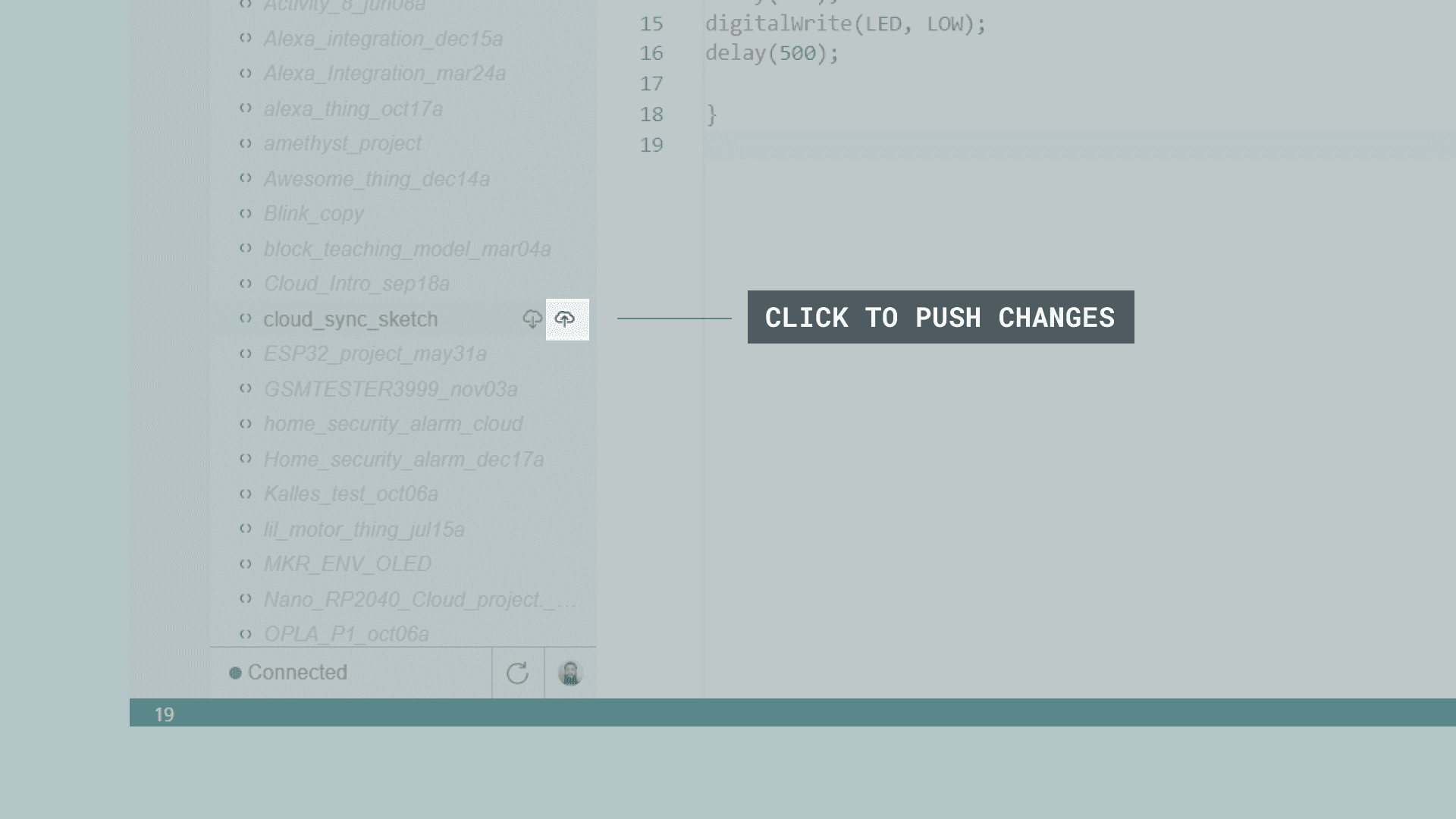 You have now pushed your changes to the Cloud. You can easily check if it has been successful by refreshing the online Sketchbook (at Arduino Cloud). The changes should now be visible.