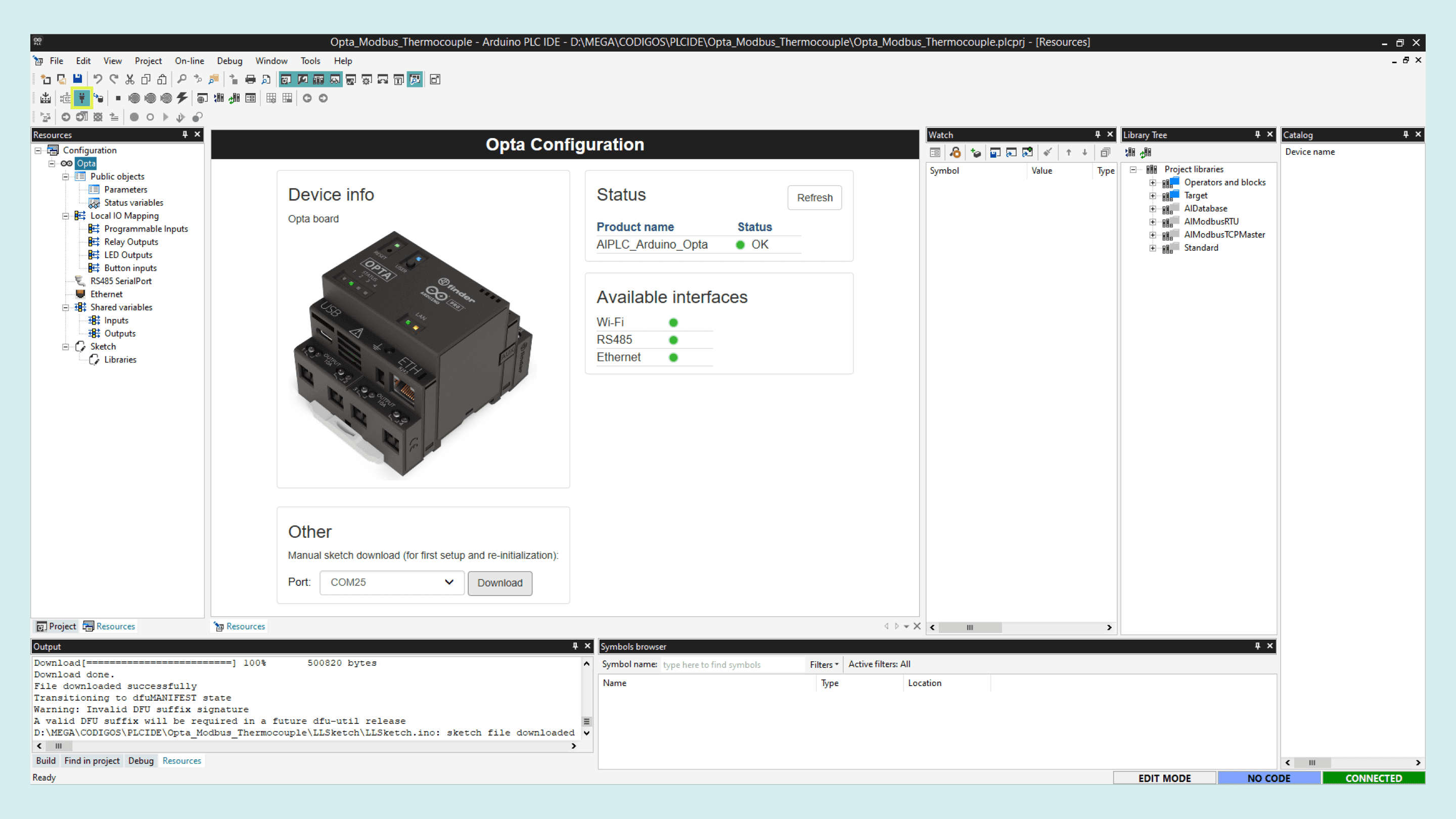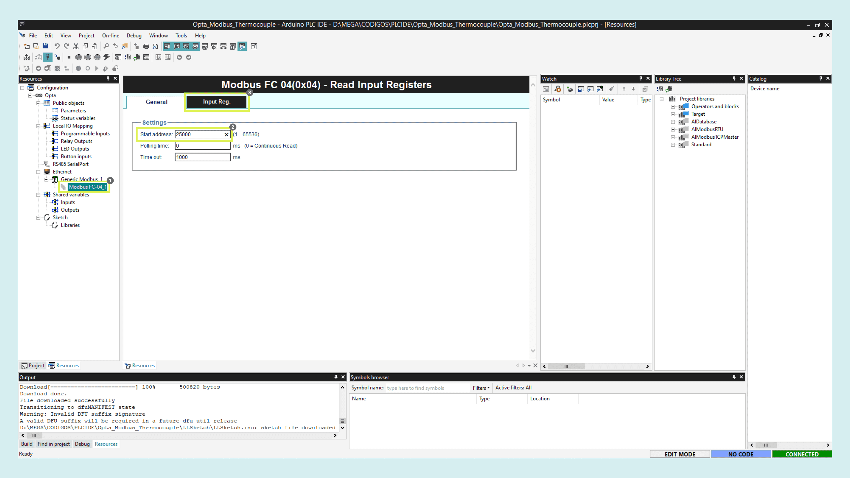 With the Opta™ successfully connected to the PLC IDE, it is time to configure the Modbus TCP communication.