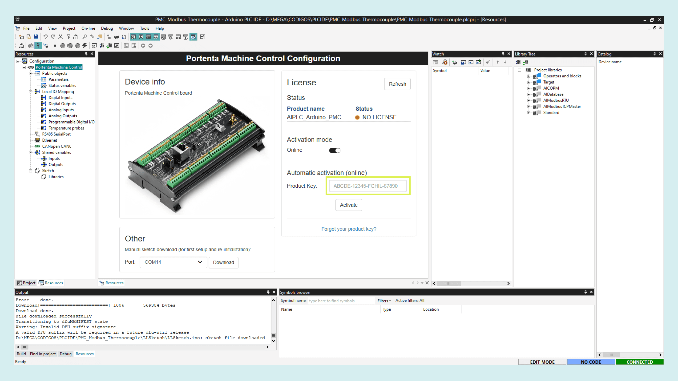 A license is needed for this product to be used with the PLC IDE, you can buy it directly from the Arduino store, and it will include the product key to activate the device.