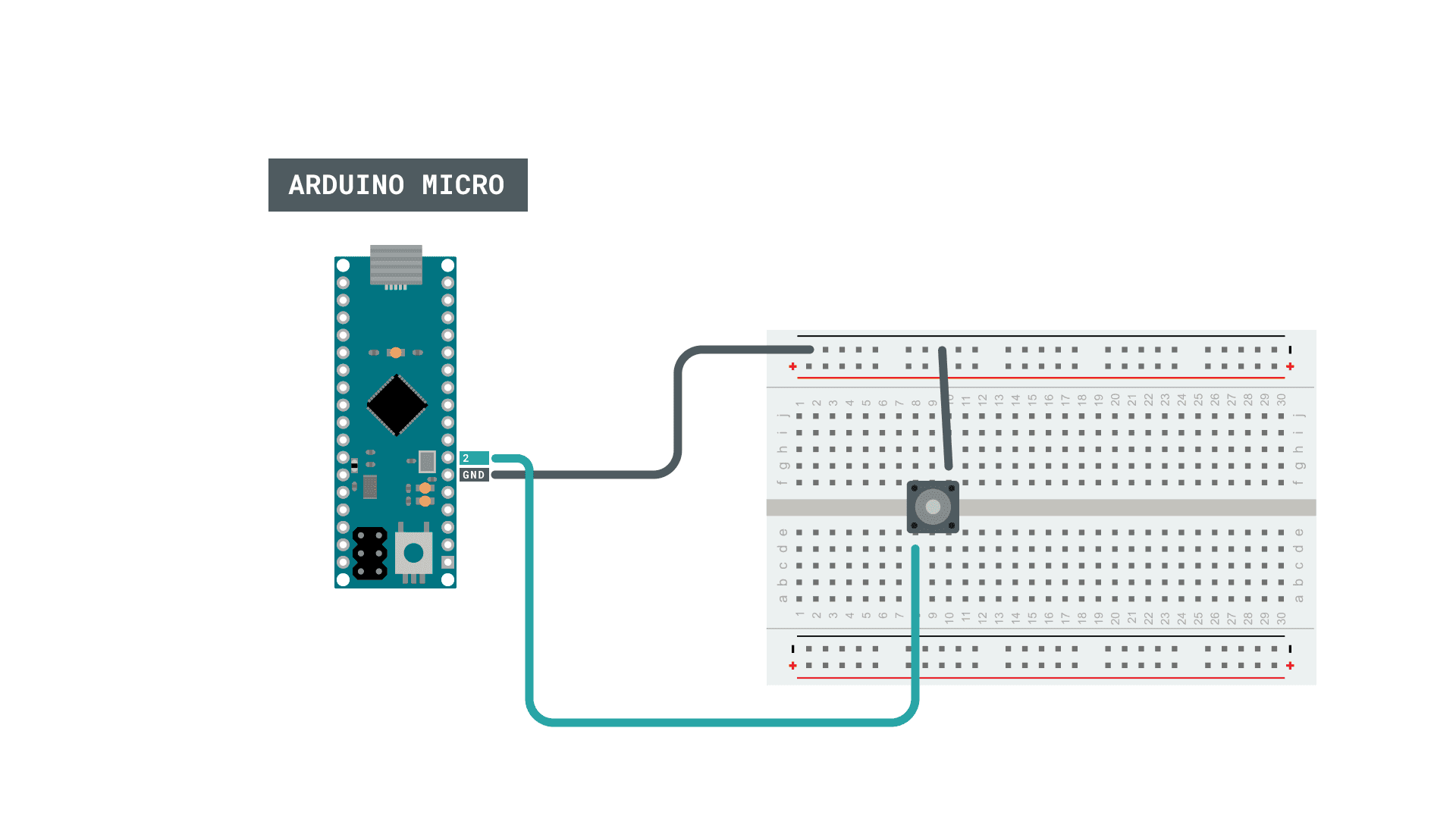 In this tutorial, we will use the Arduino Micro to produce a keypress. This will be done by simply using a regular pushbutton, and the Keyboard library. We will create a program that, whenever we press the button on the board, it will act as if we were typing the character on our keyboard.