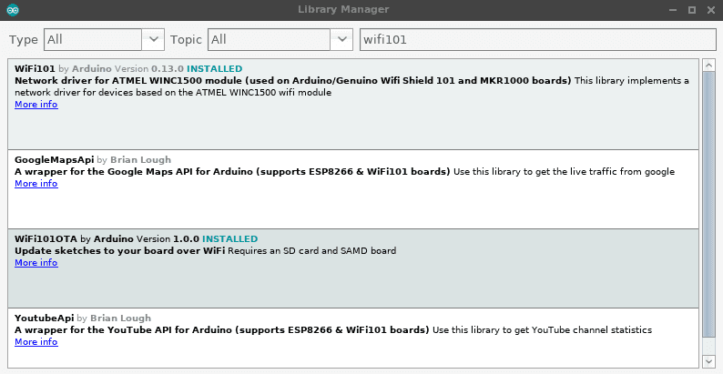 This example also works with a WiFi Shield 101 (retired) + Arduino Zero.
