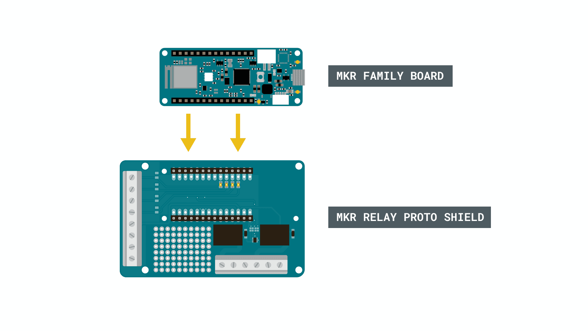 Let's begin by mounting our MKR family board on top of the MKR Relay Shield.
