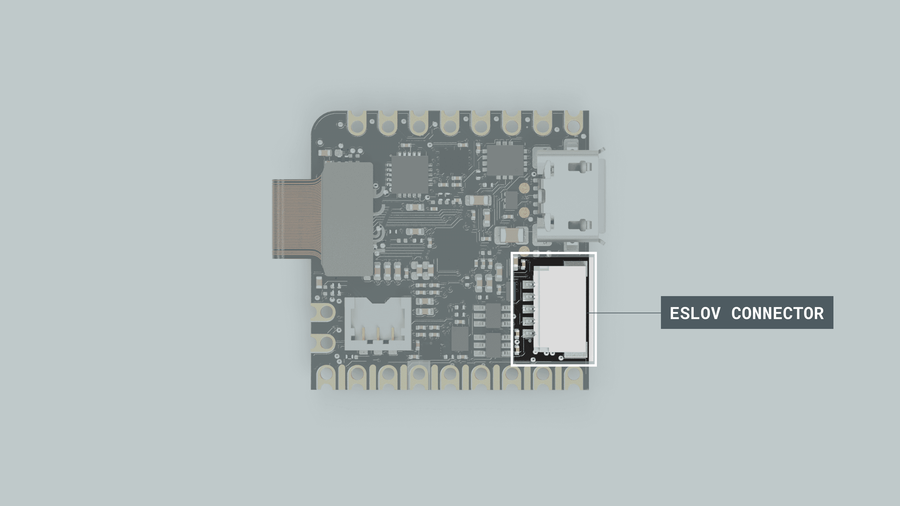 The Nicla Vision board features an onboard ESLOV connector meant as an extension of the I2C communication bus. This connector simplifies the communication between the Nicla Vision and various sensors, actuators, and other modules without soldering or wiring.