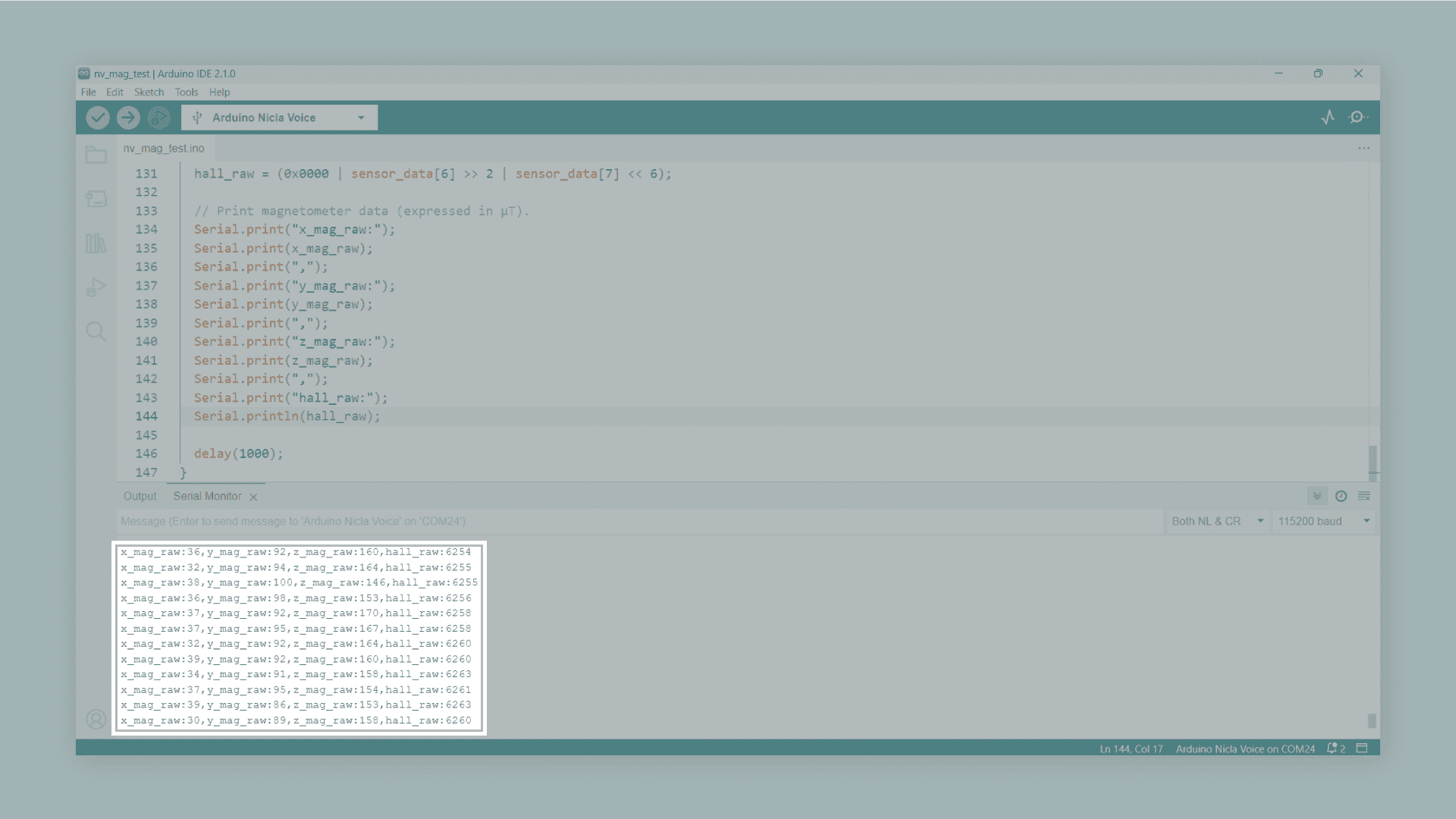 The example code shown above creates a Bluetooth® Low Energy service and characteristic for transmitting a voltage value read by one of the analog pins of the Nicla Voice to a central device.