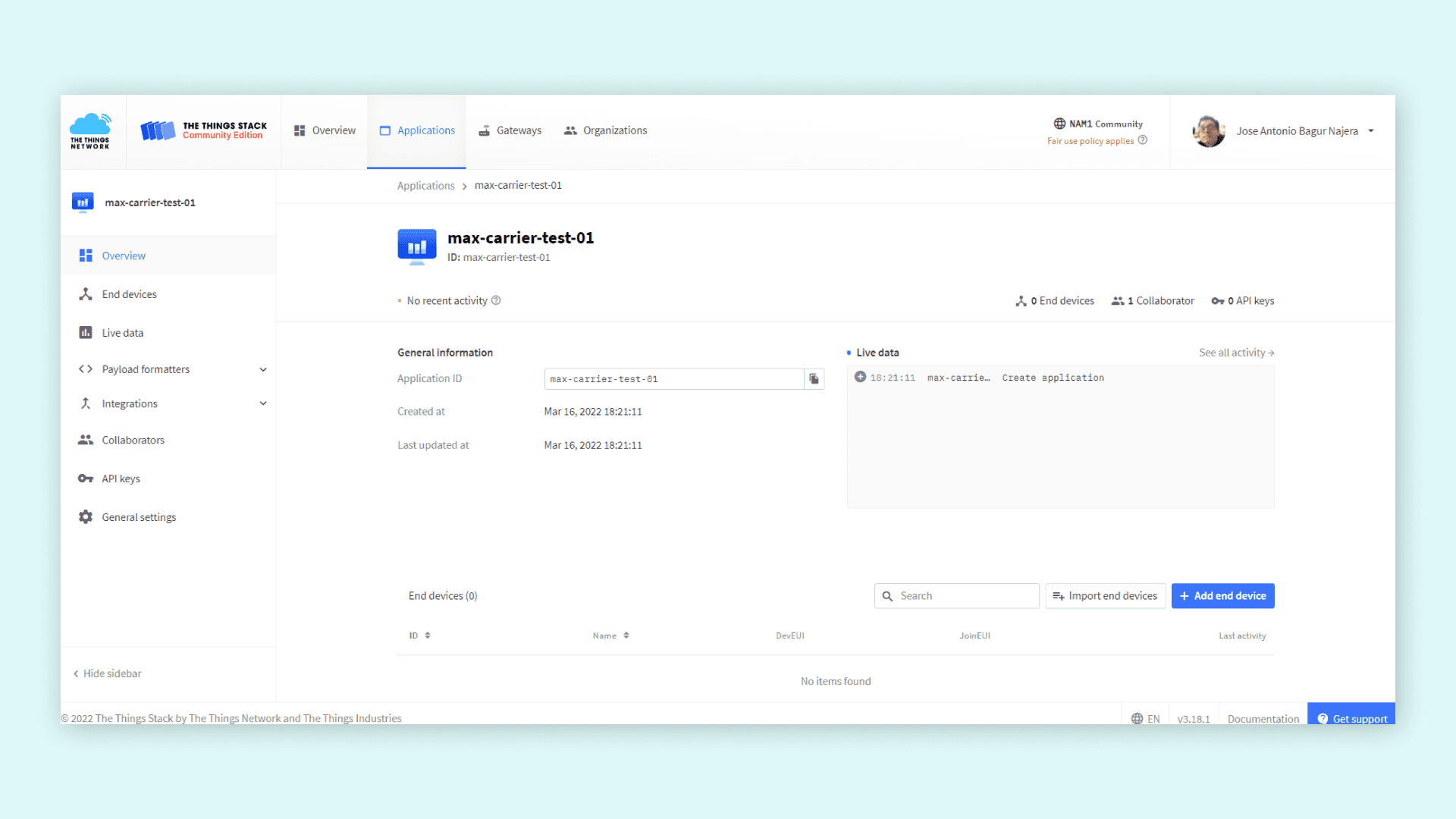 number from your Portenta Max Carrier to create an application in TTN. 3. Creating an Application in TTN