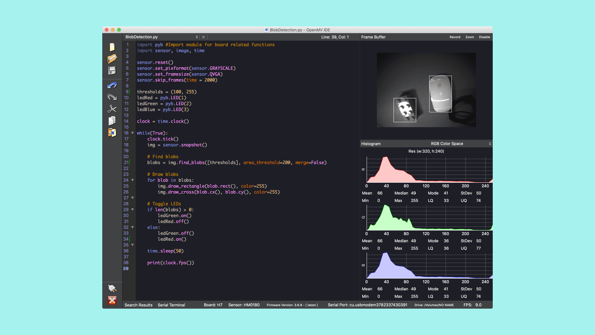 function. The resulting image needs then to be fed to the algorithm using the find_blobs