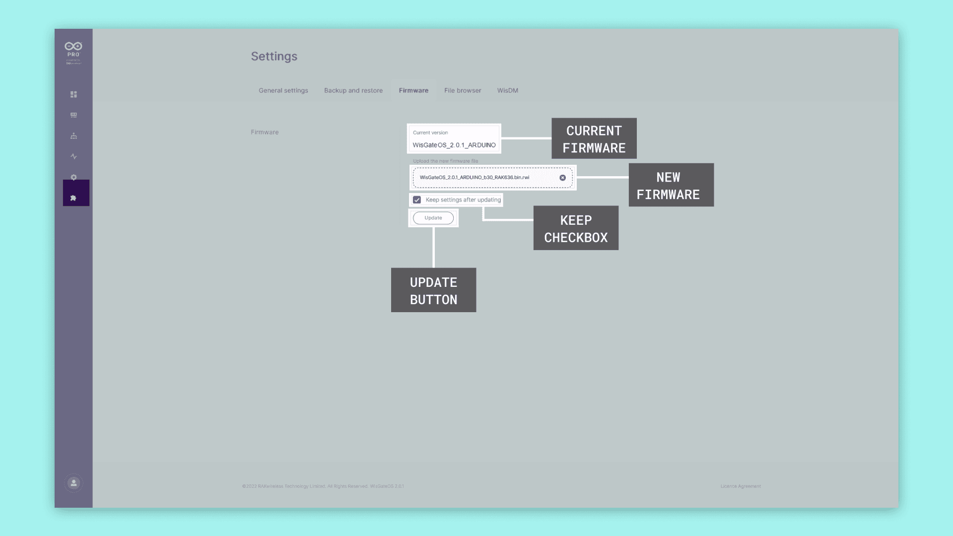 On the WisGate Dashboard, open the Settings page and click on the "Firmware" tab.