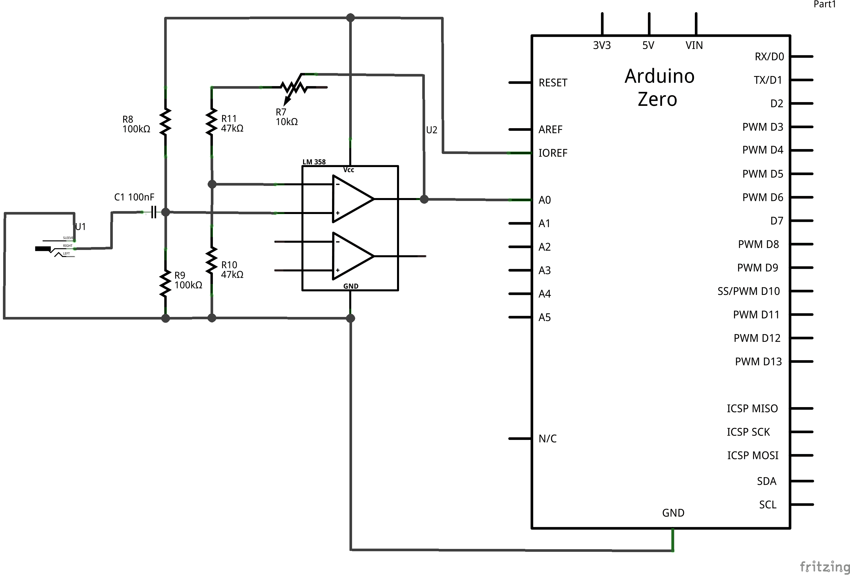 In order to get the most dynamic range even from low level inputs, the circuit consist of a non-inverting amplifier that brings the amplitude of the signal to the full input voltage range supported by the ADC. Sampling at full resolution means a better accuracy.